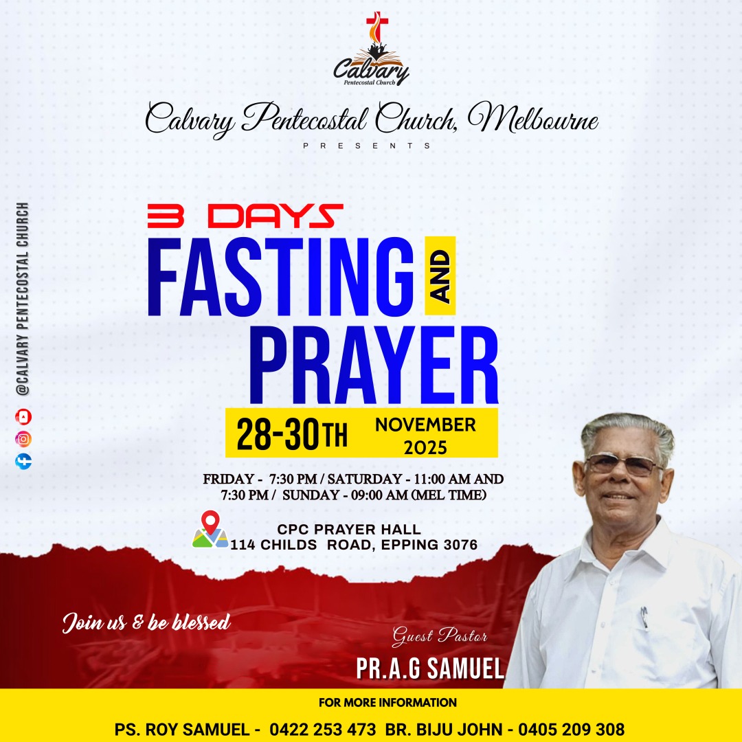 Calvary Pentecostal Church invites you to the Monthly Fasting Prayer for Nov 2025.
