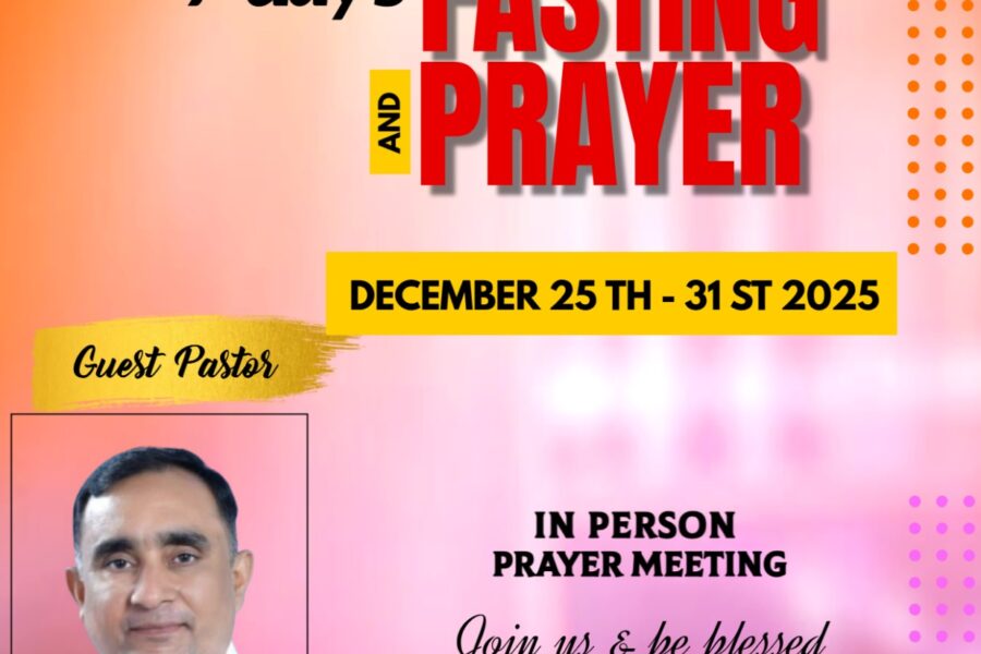 Events Year End Fasting Prayer Join us for the 7 days of Year End Fasting Prayer. Pr. Binu Parakode will…adminDecember 21, 2025