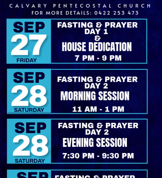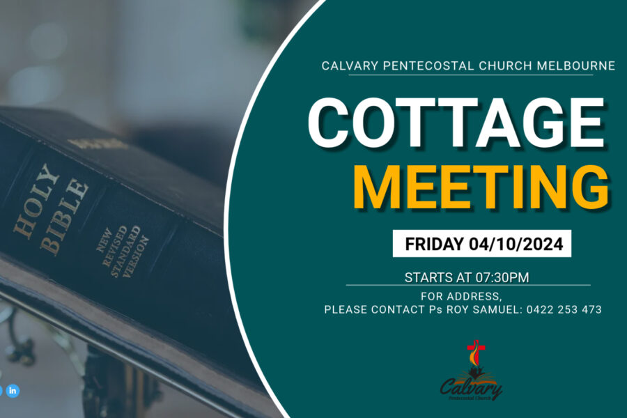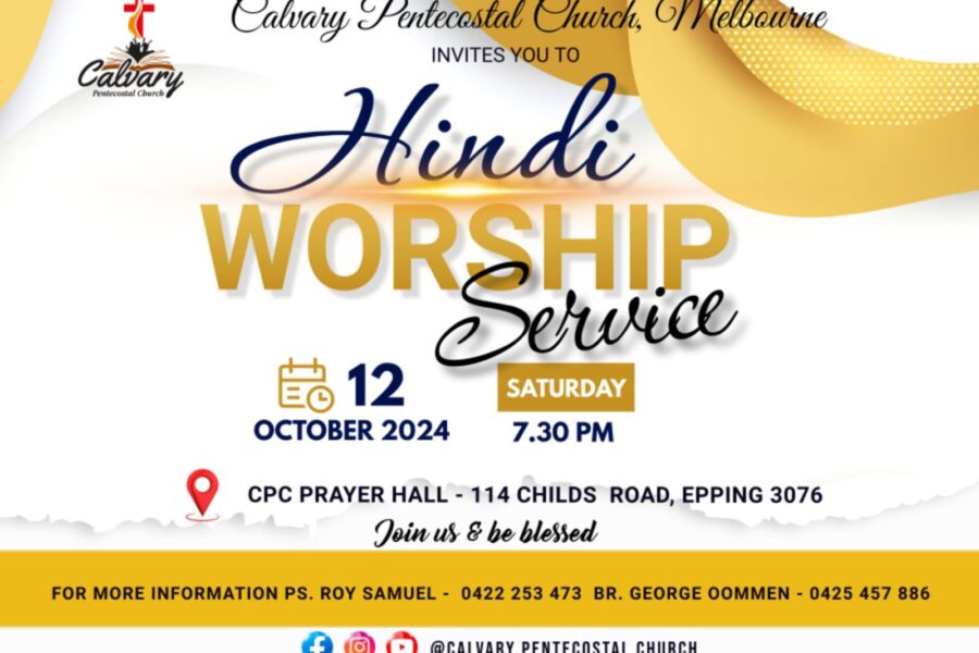 Events Hindi Worship Service Happening Tonight at 07:30 PM Calvary Pentecostal Church, Melbourne invites you to Hindi Worship Service happening tonight at 07:30 PM.…adminOctober 12, 2024