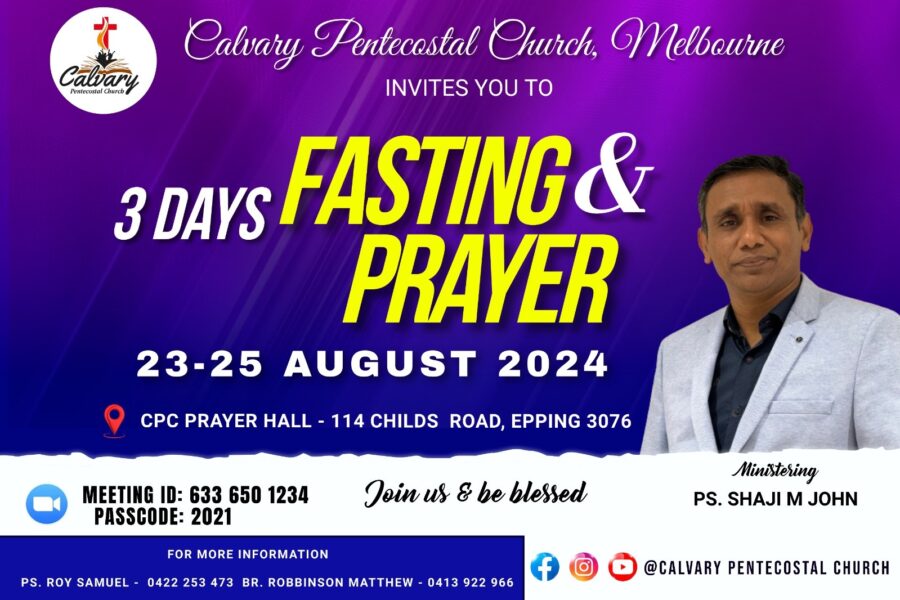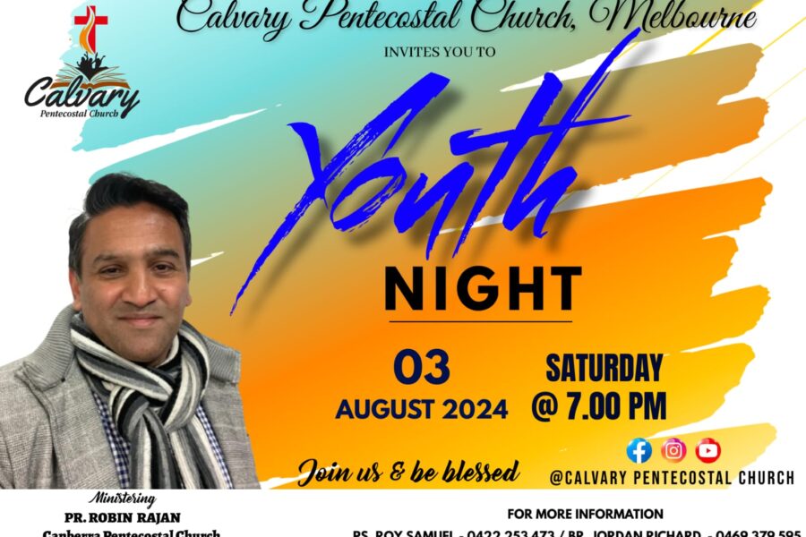 Calvary Pentecostal Church, Melbourne invites you to YOUTH NIGHT Date : 3rd August 2024, Saturday…