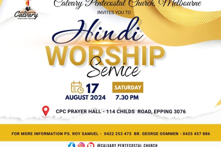 Calvary Pentecostal Church would like to invite you to the Hindi Service. Date & Time:…